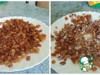 Изюм промываем и просушиваем, слегка обваляем в муке и когда тесто поднимется, добавляем в тесто и перемешиваем. |