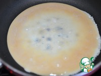 Сковороду смазываем маслом и выпекаем тонкий яичный блинчик. Даём ему остыть. |