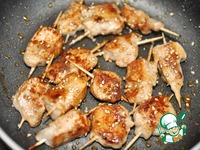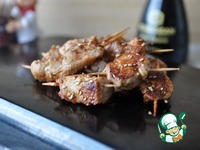 Подаём курицу на зубочистках горячей. К курице можно подать рис, овощи, зелень. Приятного аппетита! |