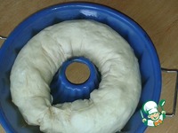 А затем в кольцо. Уложить в смазанную маслом форму и дать подойти еще 20-30 минут |