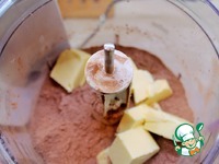 В кухонном комбайне или вручную смешайте муку, сахар, соль и какао. |