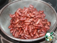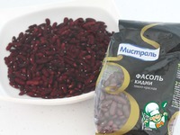 Фасоль заливаем холодной водой и оставляем минимум на 4 часа, лучше на ночь. Используем фасоль ТМ "Мистраль" Кидни (темно - красную). |