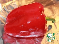 Болгарский перец смазываем оливковым маслом и отправляем в разогретую до 180 гр. духовку на 20 мин. |