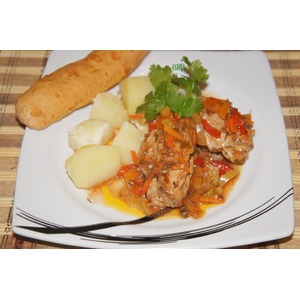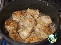Чтобы приготовить любое мясо в соусе, надо нарезать его кусочками, обжарить до румяной корочки, посолить, поперчить. Я готовила куриные бедрышки. |