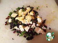 Сверху раскрошить фету, мелко натереть цедру лимона и снова перемешать. |