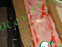 4 кусочка филе хорошо отбить в тонкие пластинки в кульке и посолить. Остальное филе нарезать крупными кусочками. |