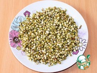 Остается маленькая часть шелухи на зернах и при желании её можно тоже удалить. Остывшие проросшие ростки маша перекладываем в салатницу. |