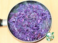 К капусте добавить очищенный от шелухи и порезанный полукольцами репчатый лук. Тушить еще 1-2 минуты, снимаете сковороду с плиты и охлаждаете капусту. |