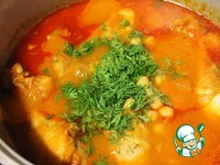 За 10 минут до готовности фасоли, добавить вареный нут, мелко рубленный укроп и соль по вкусу. Дать настояться 15 минут и можно подавать. Приятного аппетита! |