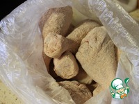 Завязать пакет и хорошенечко его встряхнуть несколько раз. Чтобы голени равномерно покрылись панировкой. |