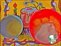 Сахар соединить с яйцами, добавить желток и взбить. Полученную смесь влить в наш протертый творог и снова взбить. |