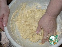 Тесто замешивается руками. В итоге должен получиться плотненький шарик. Дать тесту немного времени "подойти", т. е. оставить его в покое на 30 мин. |