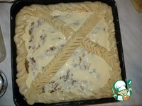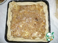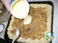 Аккуратно распределяем "заливку" по всему периметру пирога, кроме его бортов. |