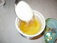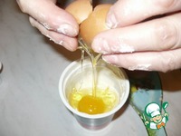 Теперь делаем "заливку" из сметаны и яиц. В сметану разбиваются яйца. |