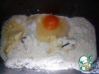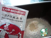 Ингредиентов много, но пирог готовится очень легко. В ведро ХП просеять муку, добавить сухие дрожжи ТМ "Саф-момент" и перемешать. |