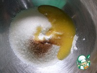 Для посыпки в миску всыпать муку, сахар, корицу, ваниин. Добавить растопленное масло и руками растереть в крошку |