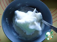 Теперь вернёмся к творожной начинке. Взбить белок в крепкую пену и соединить с подготовленной ранее творожной массой, аккуратно перемешивая обратной стороной ложки (!) |