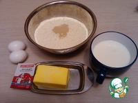 Теперь в молоке растворяем соль и сахар, добавляем его к муке, туда же добавляем яйца и мягкое масло, замешиваем тесто |