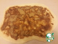 Теперь раскатываем пласт, смазываем его растительным маслом, посыпаем сахаром с корицей, сворачиваем рулетом |