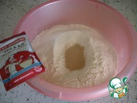 Муку просеять и смешать с дрожжами. Я использую дрожжи САФ-МОМЕНТ, которые меня ни разу не подводили, а пеку я часто! |