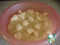 Подогреть молоко и замесить тесто из перечисленных продуктов, кроме масла. Поместить тесто в глубокую миску, сверху разложить кусочки масла. Закрыть миску плёнкой и оставить подниматься. |