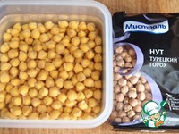 Нут промыть и замочить в холодной воде не менее чем на 4 часа. Я оставляла на ночь. Далее отварить по инструкции. |