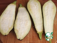 Баклажаны хорошо помыть, разрезать пополам. Затем поместить баклажаны в холодную подсоленную воду на 20 минут, чтобы ушла лишняя горечь. |