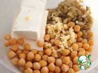 В миске соединить творог, перец, обжаренные баклажаны, отварной нут (2-3 ст. л. я оставила для украшения) и чеснок, выдавленный через пресс. |