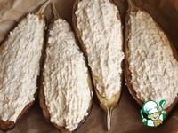 По истечении 25 минут вынуть баклажанные лодочки из духовки, заполнить из творожно-нутовой массой. |