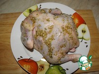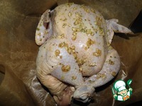Обмазать этим маринадом цыпленка и оставить минут на 30-50 ( можно готовить сразу, но так лучше будет аромат) |