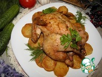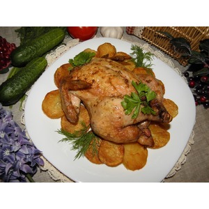Описание: Кто друзья со мной согласен? Что вкус у курицы прекрасен! Много с ней рецептов знаем! Варим, жарим, запекаем..! И поверьте, не бывало..! Чтоб она надоедала! Вот и я хочу напомнить вам один простой рецепт..! Ароматом дом наполнить, сделать вкусным наш обед! А так же в праздник и на ужин, он вдруг кому-то будет нужен..! Кто любит пряный аромат, надеюсь очень будет рад! Нам для блюда пригодится : масло, специи, корица..! И конечно же чеснок, в этом деле всем помог..! Наш цыпленок получился очень даже ароматным! Нежной сочностью налился, загорел весьма приятно! Угощайтесь дорогие! Птички просто золотые!