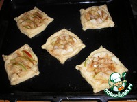 Из подошедшего теста на противне раскладываем лепёшки и начиняем их яблоками. Посыпаем корицей и сахаром. |