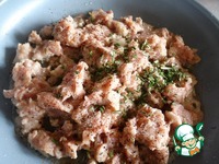 Смешать мясную начинку с луком и яичным белком. Остудить. |