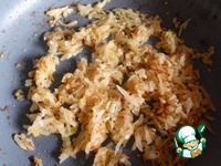 Лук почистить, помыть, мелко нарезать и поджарить на оставшемся от фарша жире. Два оставшихся белка также поджарить и измельчить. |