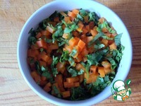 Морковь отвариваем до полуготовности. Нарезаем мелкими кубиками, смешиваем с рубленной кинзой. Солим и перчим по вкусу. |
