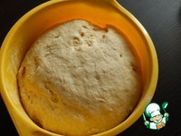 По тихоньку вводим муку. Вымешиваем элатичное мягкое тесто. Оно слегка должно липнуть к рукам. Оставляем тесто на расстойку. |