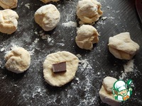 Шоколад ломаем на дольки, у меня три вида, молочный, белый с орехами и кофе с молоком. Булочки будут пасхальными подарками поэтому я решила выпекать их в бумажных формочках. |