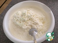Добавить в крем творог и перемешать хорошо. |