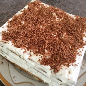 Потереть шоколад и посыпать сверху. Дать пропитаться 2-3 часа (у меня он обычно ночь стоит в холодильнике). |
