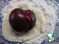 Получилось пять колобков из творожного теста со сливами внутри. |