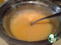 Объединить с желтками и получившуюся пышную смесь вылить в кастрюлю. Через 1-2 минуты снять с огня. |