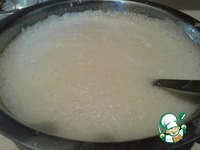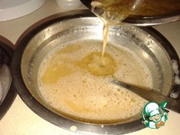 Постепенно добавляем чуть остывший бульон, продолжая взбивать. |