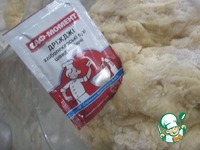 Вымешиваем тесто (такое чтоб не липло к рукам)и даём постоять с полчасика. По рецепту быстрое тесто сразу готово к выпеке, но я даю отстояться |