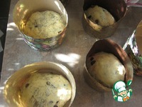 Добавляем мак и изюм, раскладываю по формочкам для куличей тесто... стоит минут 20 и отправляем выпекаться минут на 35 в разогретую до 200градусовдуховку |