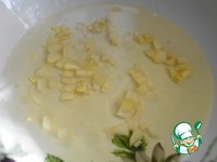 Для заправки смешать подсолнечное масло, лимонный сок и бальзамический уксус, посолить, добавить мелко нарезанный чеснок или пропущенный через пресс. |