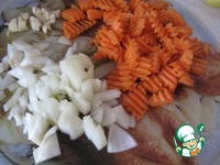 В конце варки супа добавить обжаренные до мягкости лук, морковь и чеснок, добавить специи |