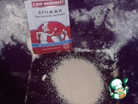 Добавить теплое молоко, 200 г муки и оставить в теплом месте примерно на 30 минут |