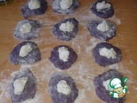Разделить на 12 частей, из каждой сделать лепешку и уложить в центр творожный шарик |