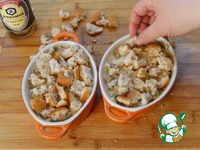 Хлеб крошим на небольшие ломтики, и выкладываем поверх курицы. |