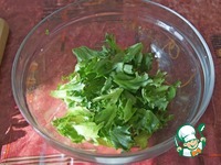 Салат лучше взять твердых, хрустящих сортов, например, Фрилис или Айсберг. Нарвать его руками на кусочки. |